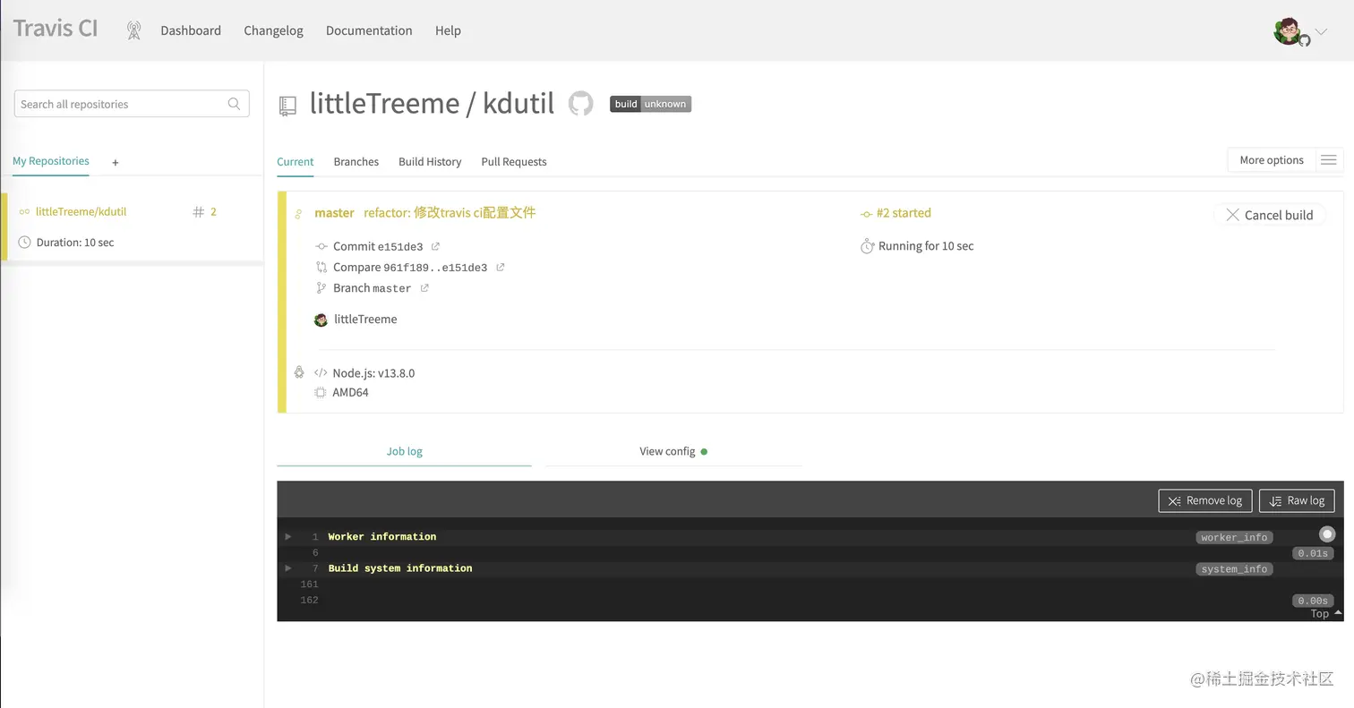 3.当代码仓库中代码发生变更,Travis就会自动触发,并执行你.travis.yml定义好的命令,完成测试和构建
