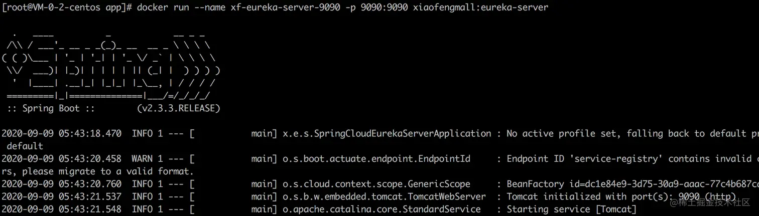 docker run --name xf-eureka-server-9090 -p 9090:9090 xiaofengmall:eureka-server