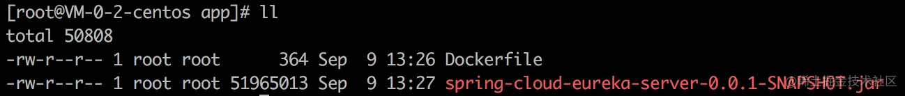 3,把Dockerfile和spring-cloud-eureka-server-0.0.1-SNAPSHOT.jar拷贝到centos上/docker/app目录下