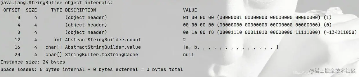 System.out.println(ClassLayout.parseInstance(o).toPrintable());