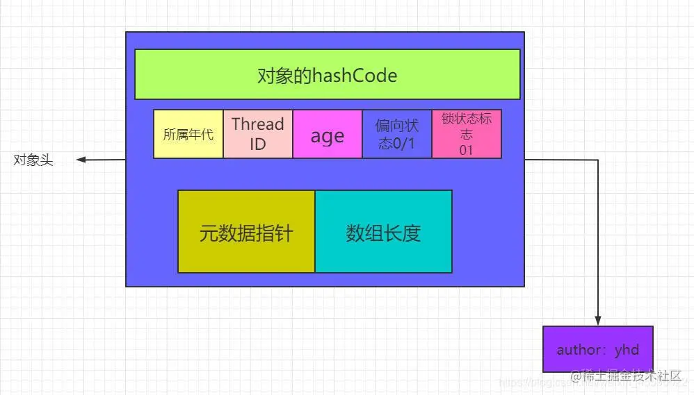对象头:比如hash码,对象所属的年代,对象锁,锁状态标志,偏向锁(线程)ID,偏向时间,数组长度(数组对象)等。