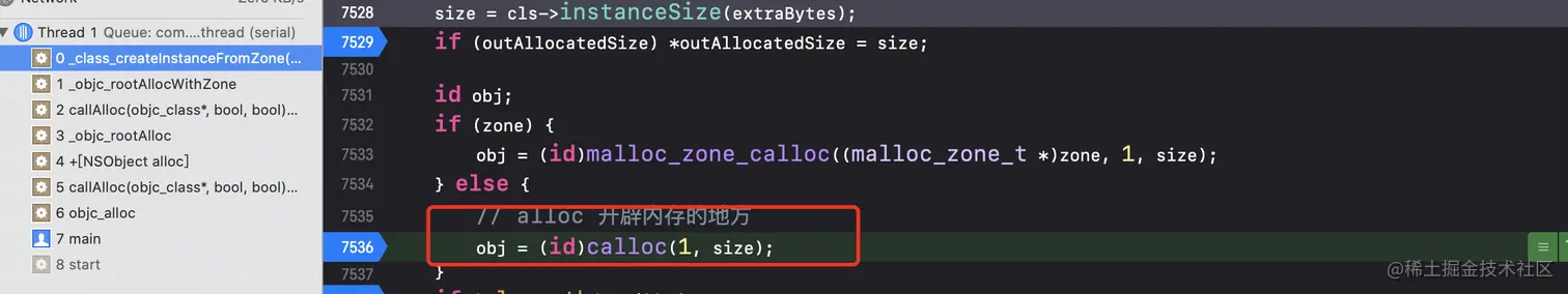 callAlloc调用_objc_rootAllocWithZone