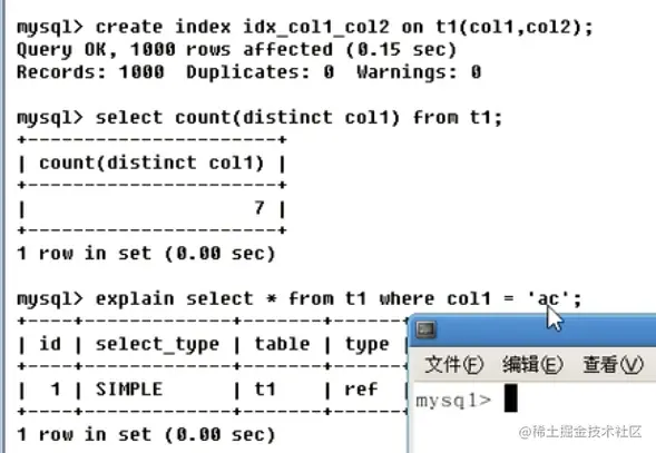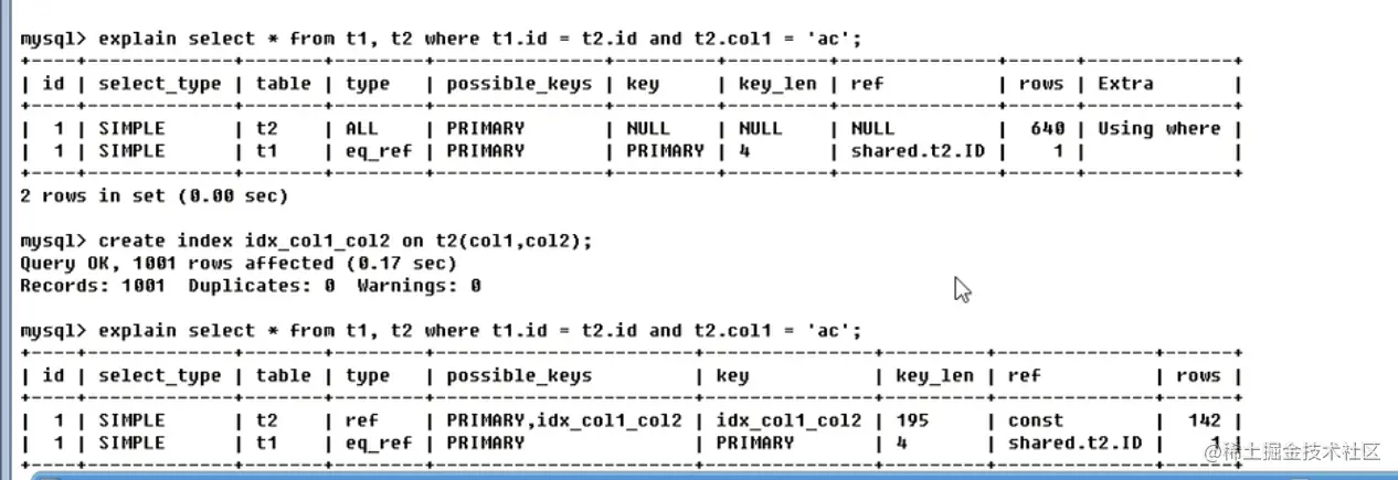 - 第二个test.t1.ID表示索引哪些列被引用(关联)