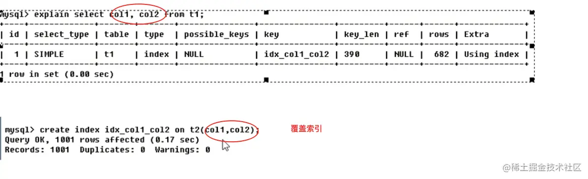 - using index 表明用了覆盖索引