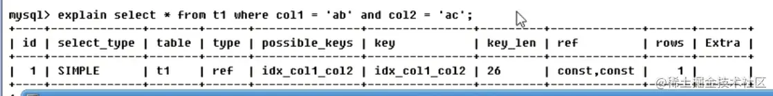 - 第一个const 表示 t1.other_column = '' 常量