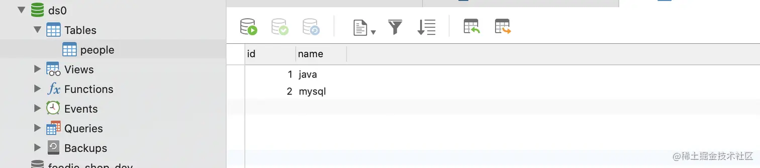 我这里创建了一个ds0的数据库和people表,并插入了二条数据.