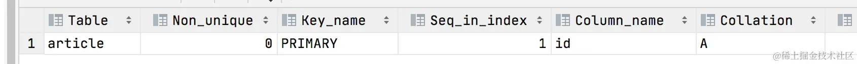 show index from article;