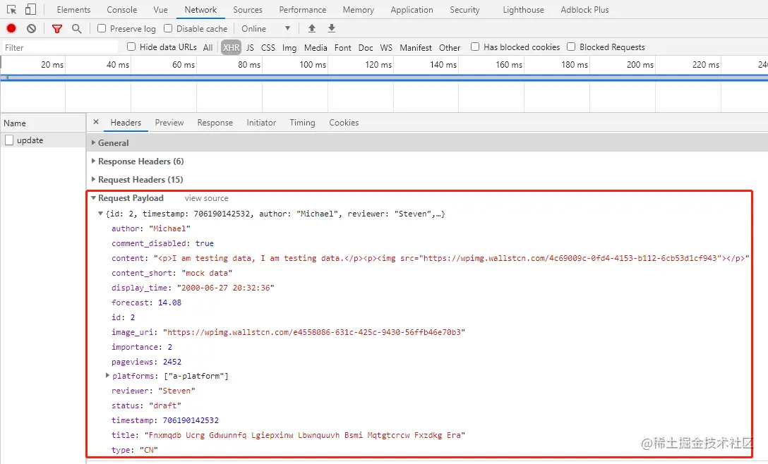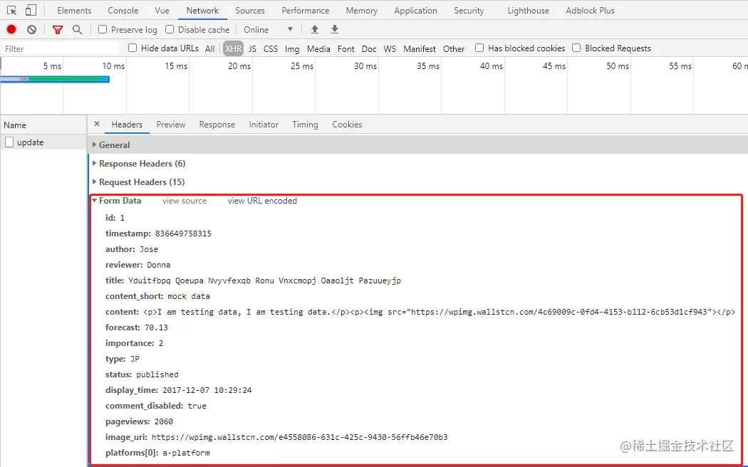 现在查看相关请求数据: