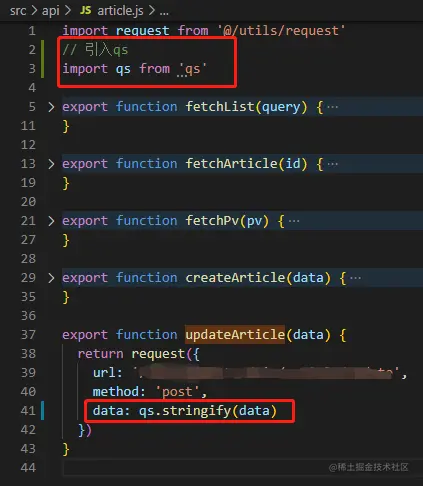 之后继续查找真正的方法,使用 qs 转化