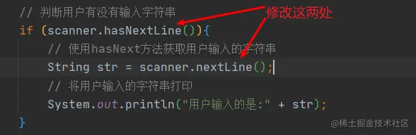 System.out.println("用户输入的是:" + str);