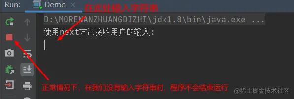 System.out.println("使用next方法接收用户的输入:");