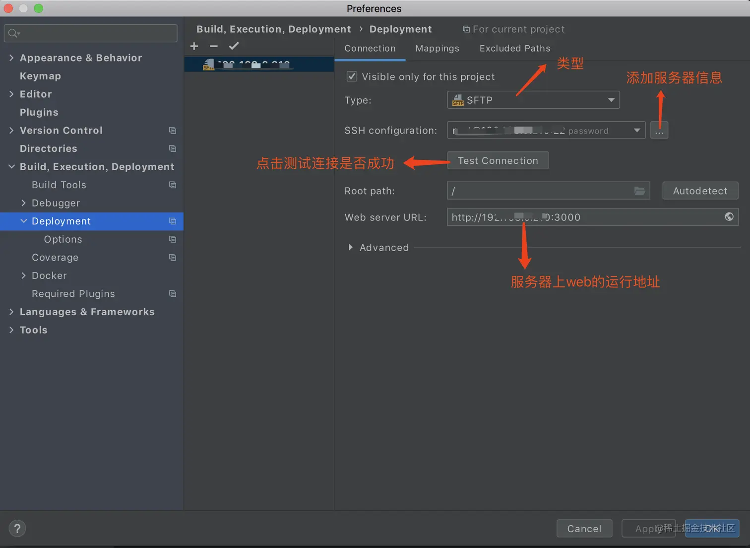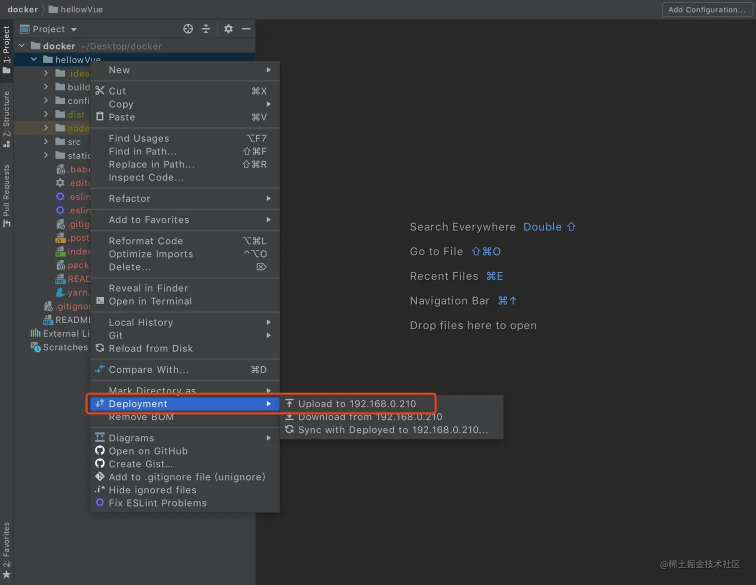我的编辑器是用的webstorm,所以使用了它自带的插件Deployment