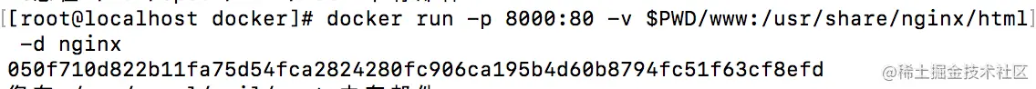 docker run -p 8000:80 -v $PWD/www:/usr/share/nginx/html -d nginx