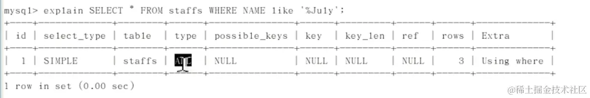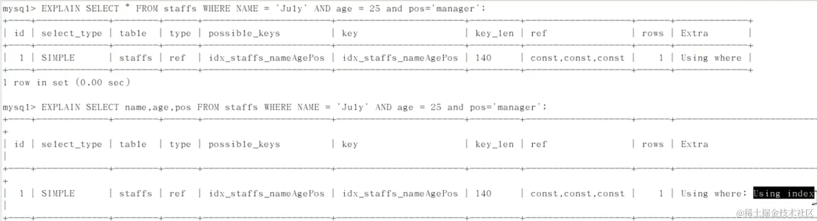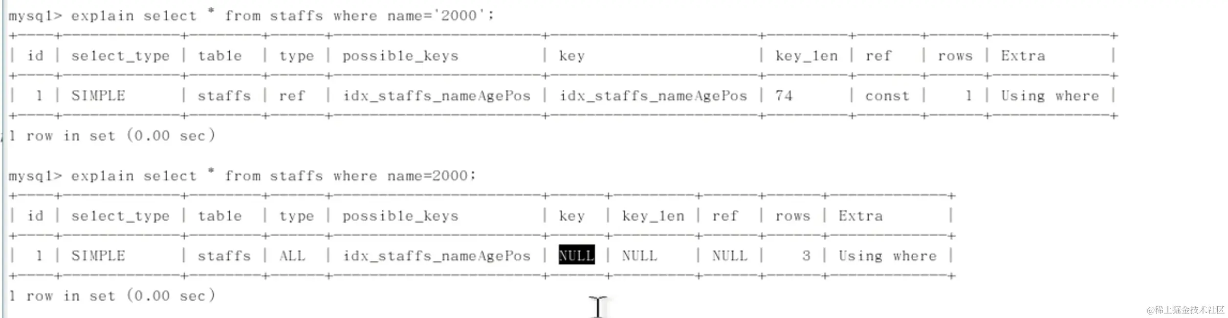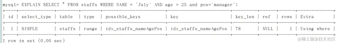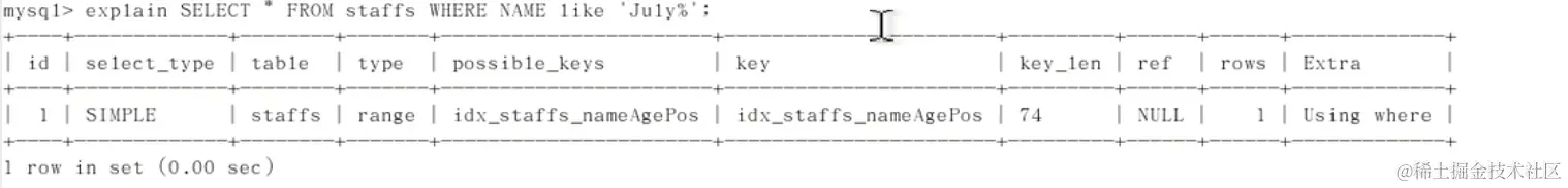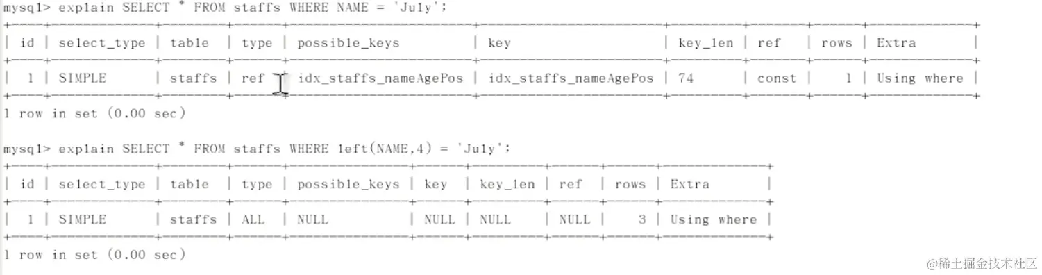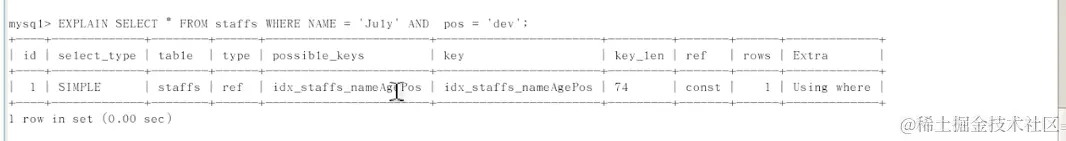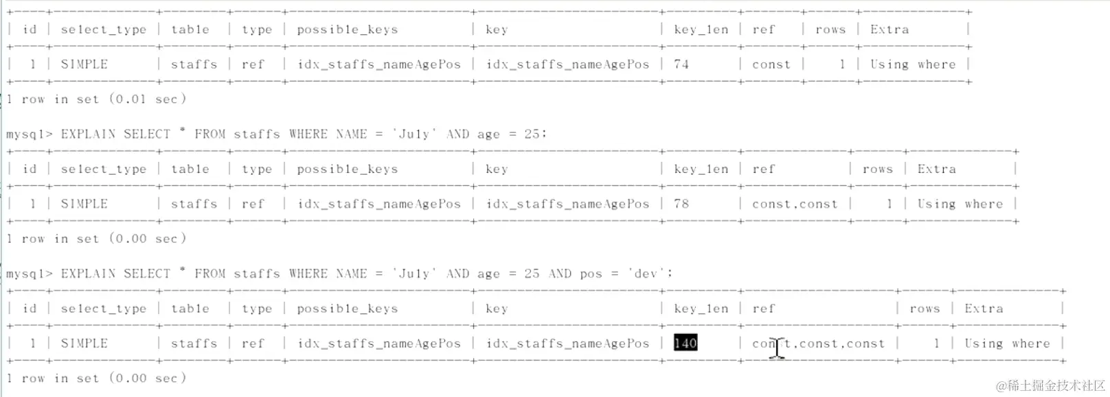 - 中间断了 ref少了const key_len短了, 实际后面失效了