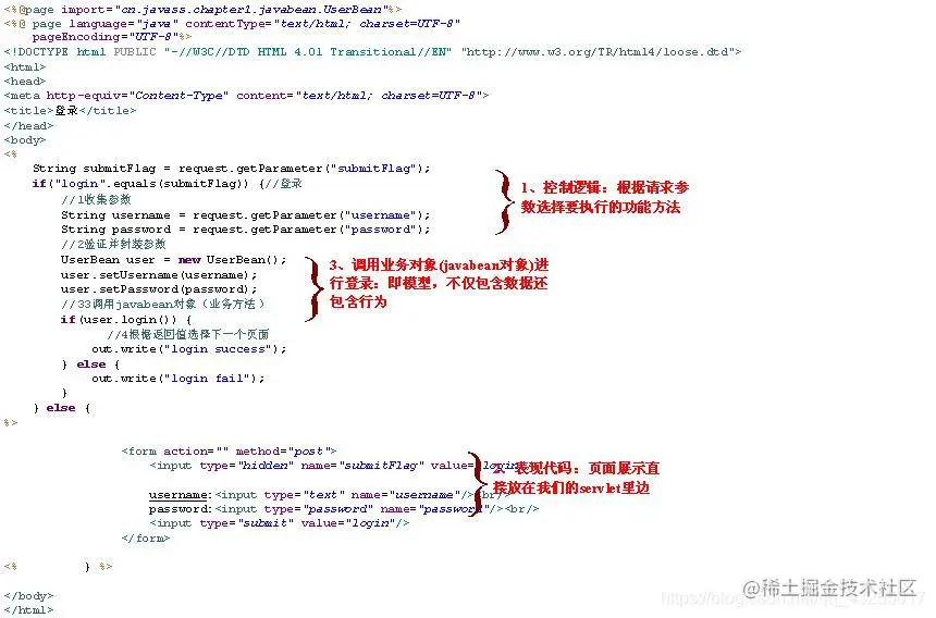 这样的代码前端和后端混在一起,相互依赖JSP与Java Bean之间严重耦合,java代码和Html代码混在一起,这要求开发人员既要会前端也要会后端,给测试带来了很多不方便,代码也不能复用。