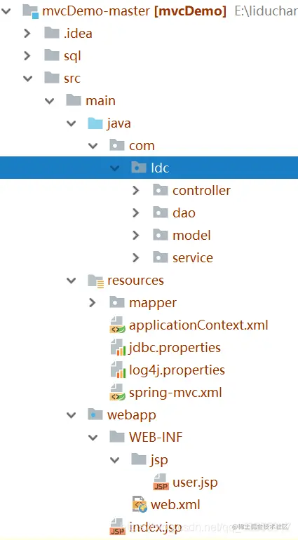GroupId以及ArtifactId,这些比较简单就直接跳过了,不然会被大佬diss死了,创建完项目后的基本目录结构如下: