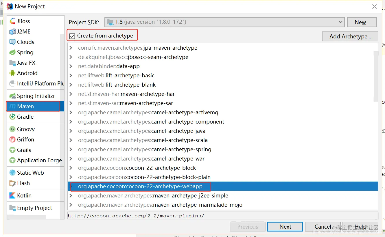 Maven,右边勾选Create from archetype,并且选择webapp模块: