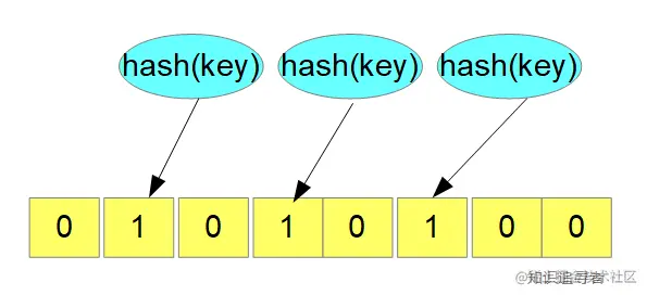 向布隆过滤器中添加一个元素key时,通过多个hash函数计算多个hash值,并将对应位置的值置为1;由于不同的key就有不同1的位置,用于区分key;但是但数据量大的时候,就会出现相同key被几个hash函数hash后的值一样,所以会出现误差;