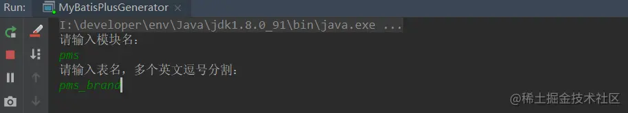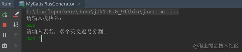 String[] tableNames = scanner("表名,多个英文逗号分割").split(",");