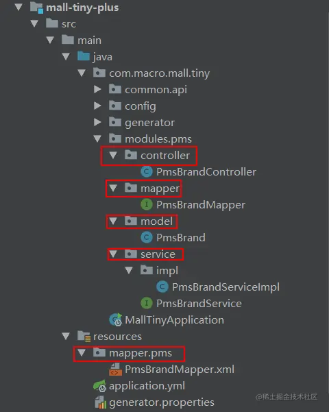 PmsBrandMapper接口由于继承了BaseMapper接口,直接拥有了各种CRUD方法;