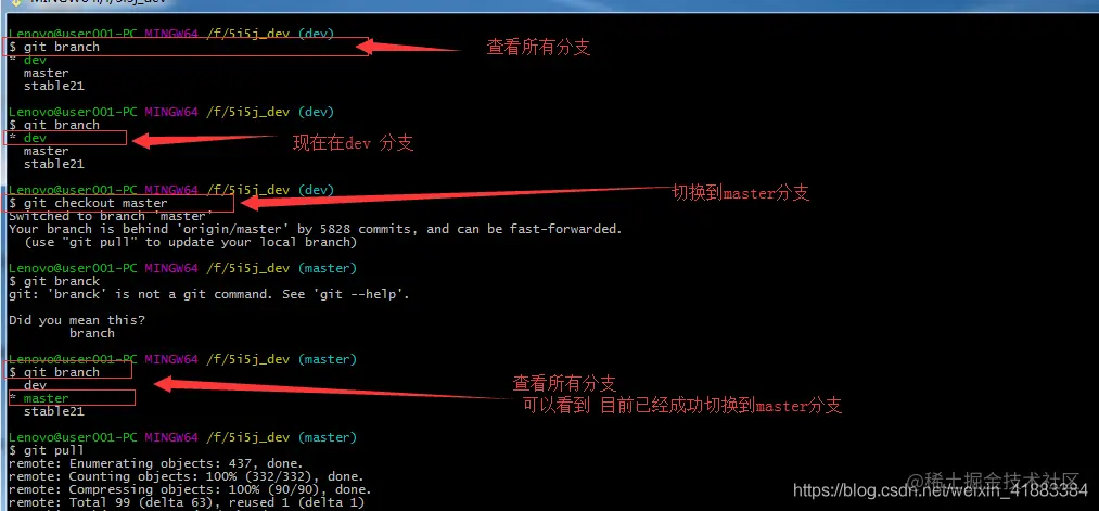 git 查看远程分支,删除远程分支 张漂亮 2020-09-10 1,992 阅读1分钟 项目时间长了,难免有不使用的分支,继续保留难以维护,有必要删除掉 查看远程分支 git branch -a 删除远程分支 git push origin --delete branchName
