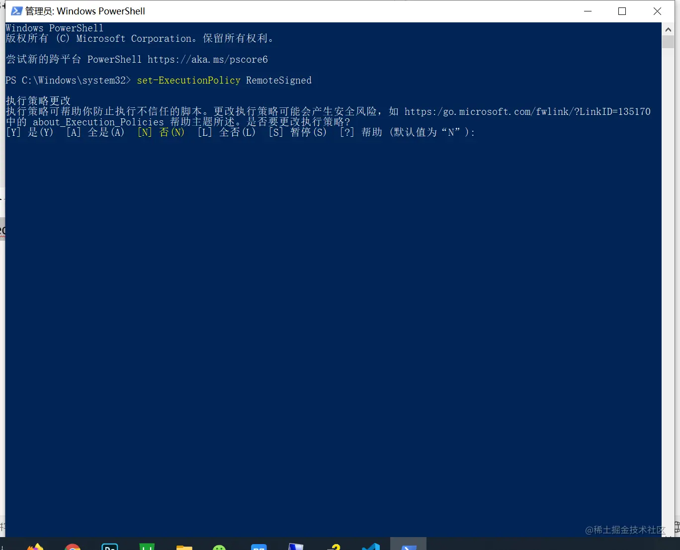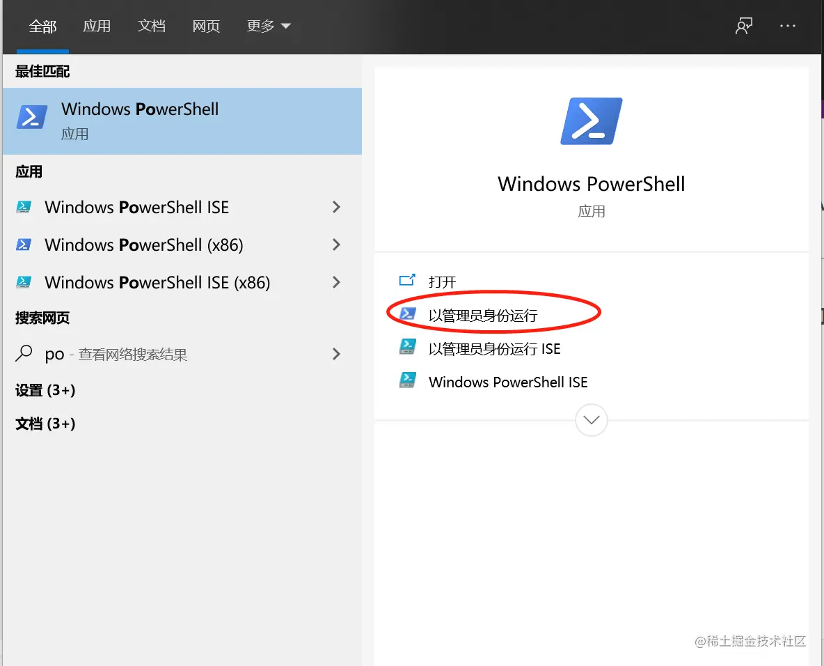 以管理员身份运行powerShell(一定要以管路员身份打开):