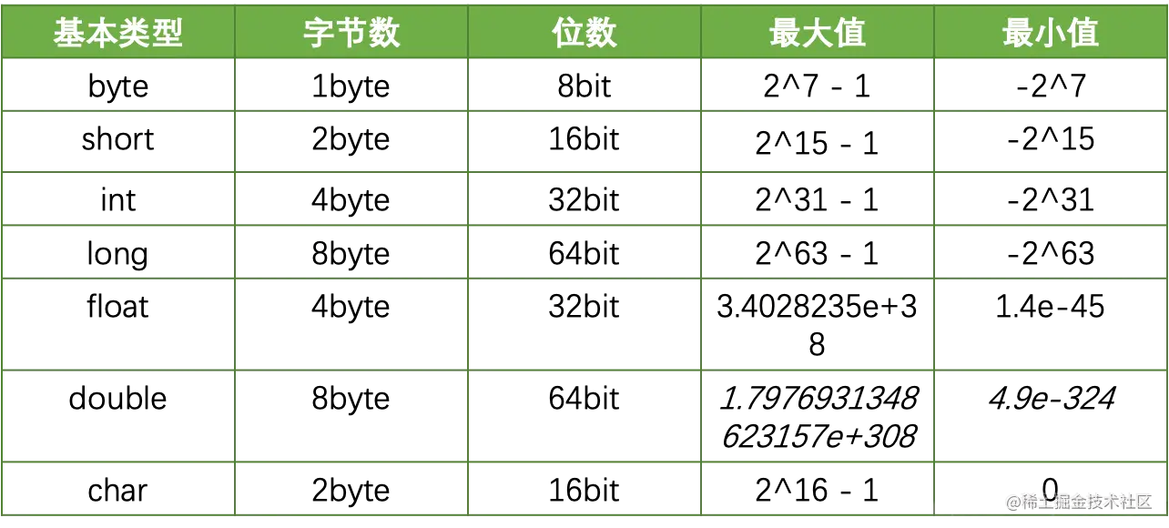 每种Number类型都有它的范围,我们看下java中Number类型的范围: