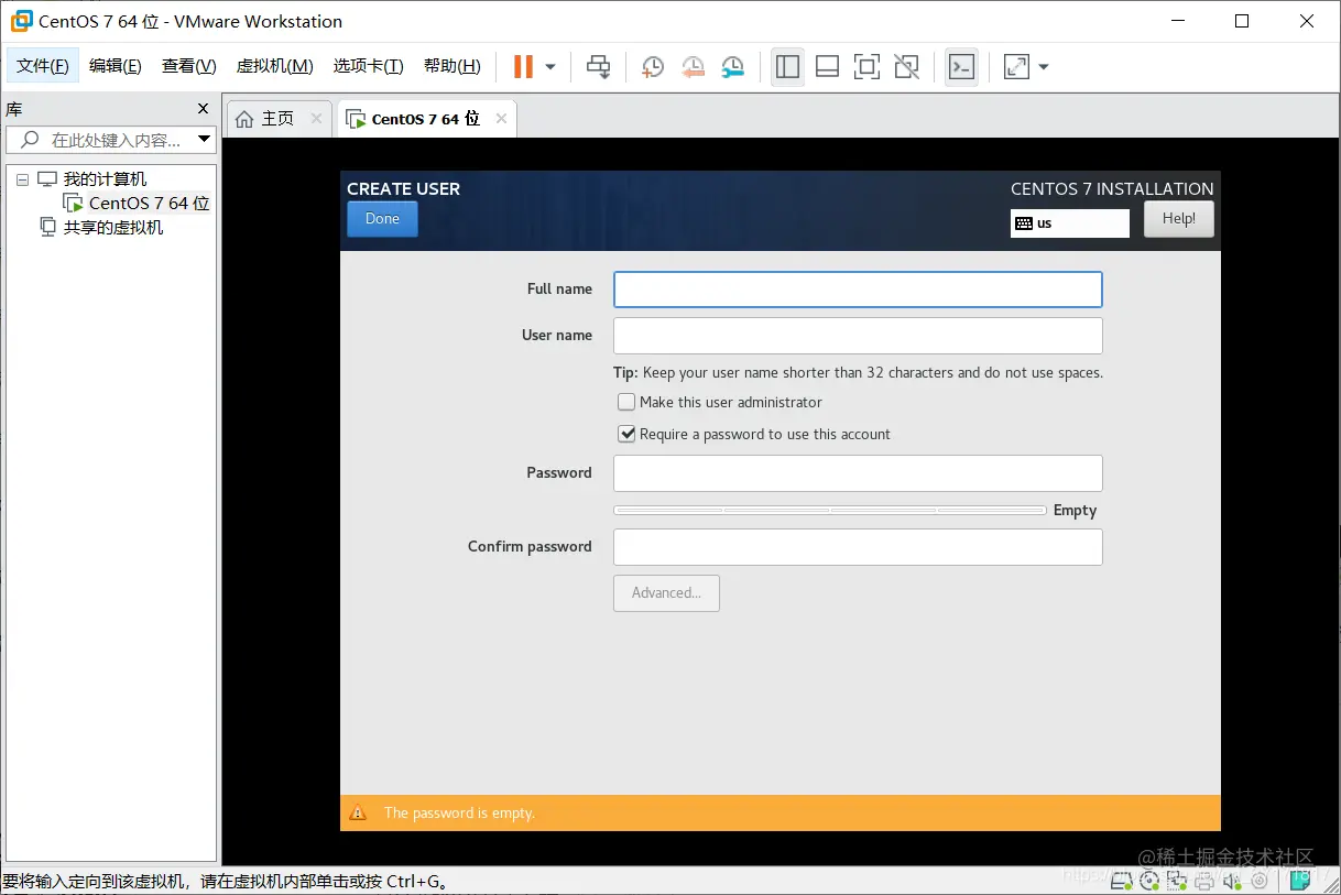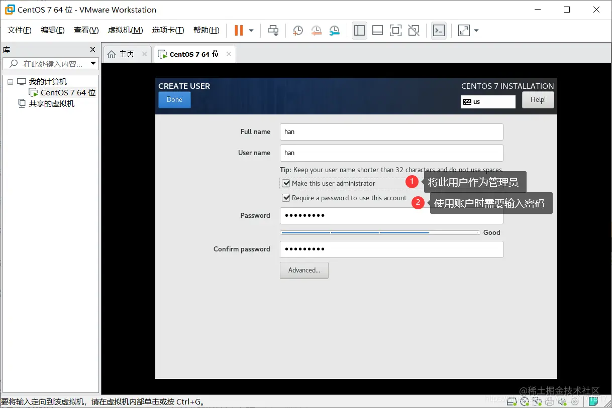 用户名称不能使用root,按照提示将信息填完,就可以点击Done。