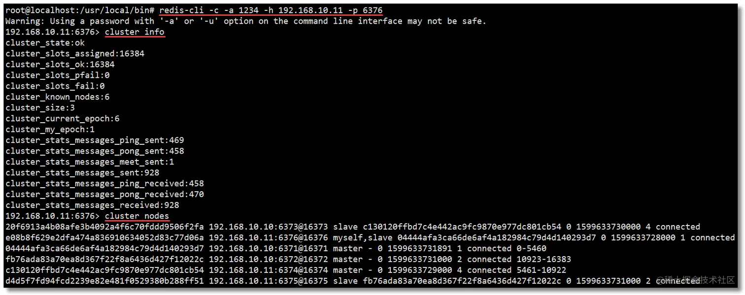 redis-cli -c -a 1234 -h 192.168.10.11 -p 6376