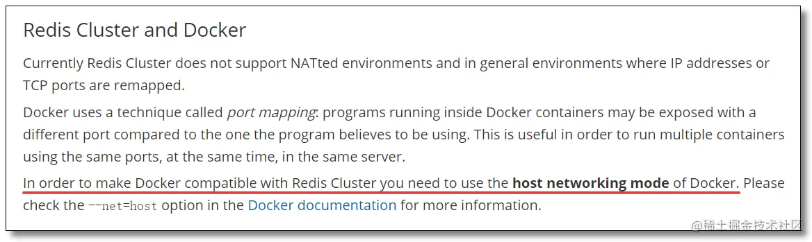 按照 Redis 官网:redis.io/topics/clus… 的提示,为了使 Docker 与 Redis Cluster 兼容,您需要使用 Docker 的 host 网络模式。