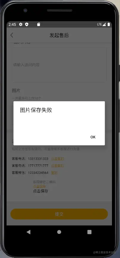 Alert.alert('图片保存失败')