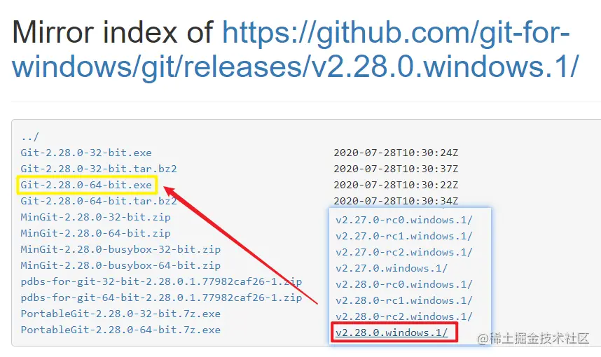 - 选择适合自己系统文件:例如:Git-2.28.0-64-bit.exe