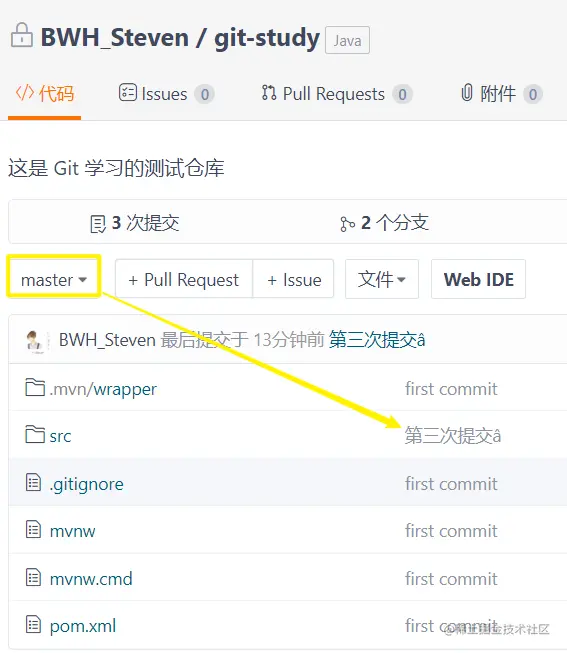 刚才命令行的方式,我们是在我们创建好的本地 Java 项目中初始化 Git 本地仓库,然后提交到远程仓库,还有一种方式,就是直接克隆远程的空仓库下来,例如克隆下一个名为 test 的文件夹,其中含有例如 .git 、.gitignore 等文件或文件夹,然后将这些内容全部复制到你的 Java 项目的根目录下也是可以的