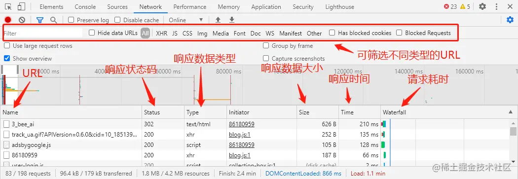 开发者工具最常用的四个功能模块: