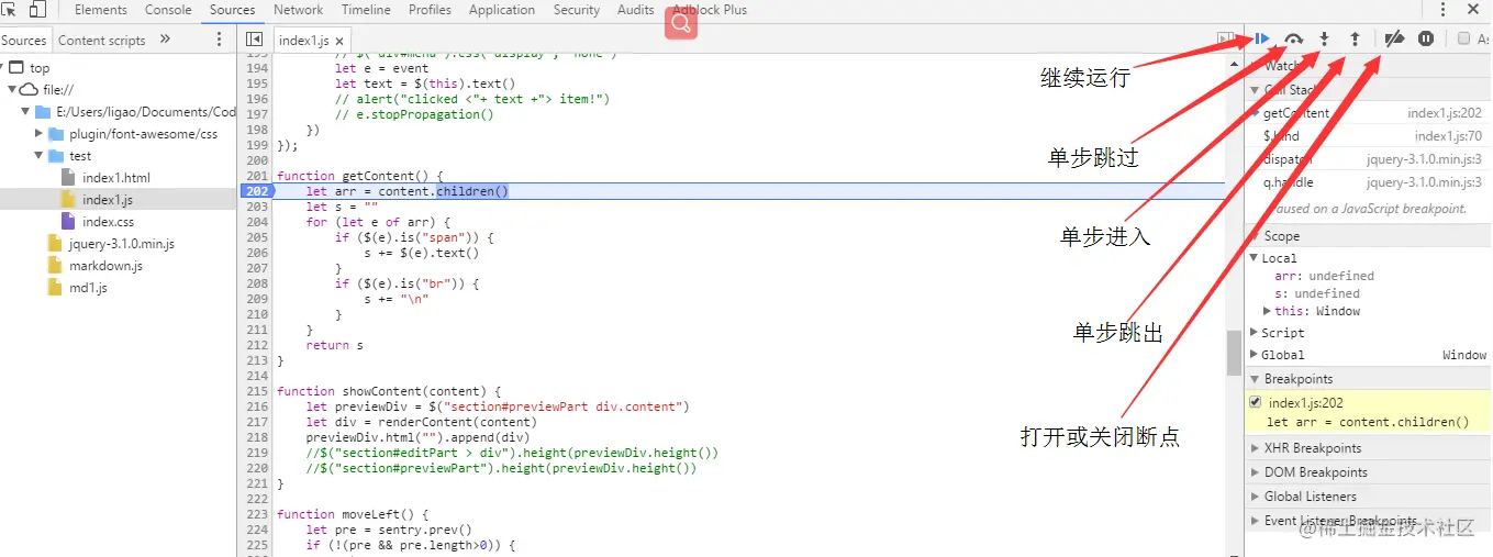 在右侧变量上方,有继续运行、单步跳过等按钮,可以在当前断点后,逐行运行代码,或者直接让其继续运行。