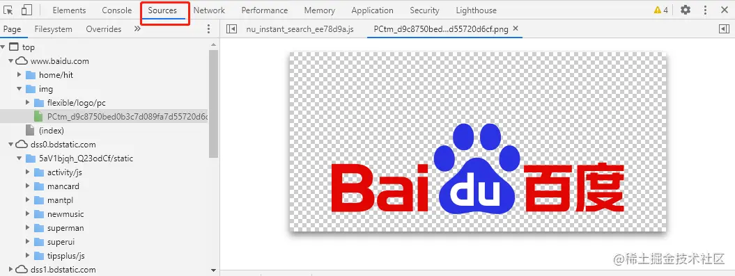 在源代码(Source)页面可以查看到当前网页的所有源文件 包括:样式、css、图片、js 文件等。在左侧栏中可以看到源文件以树结构进行展示。
