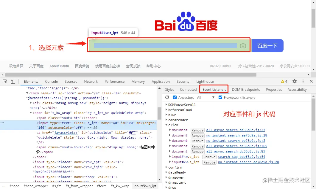 查看元素的监听事件