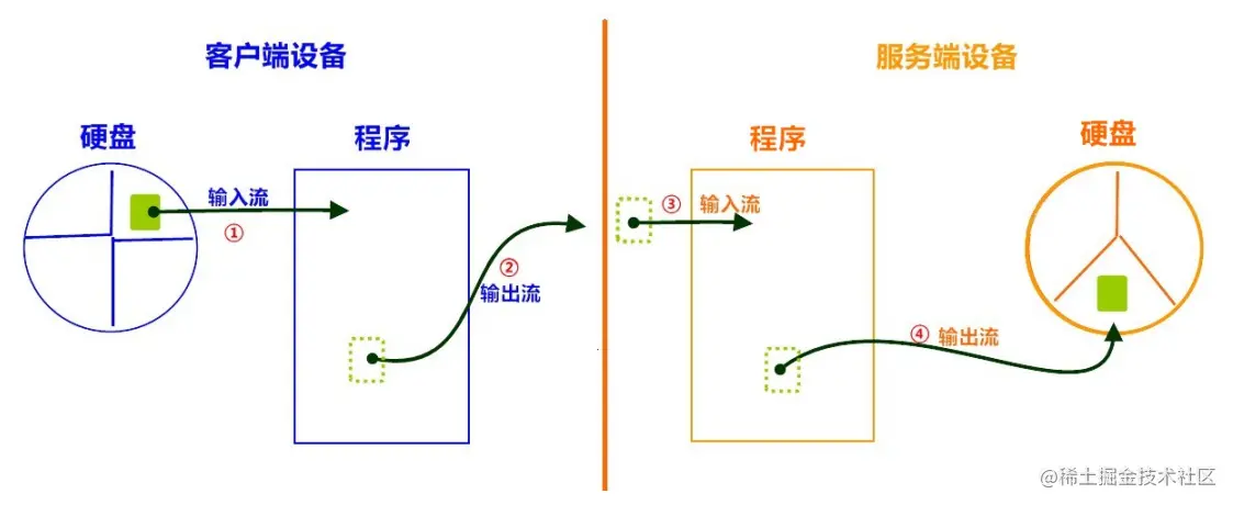 - 【客户端】Socket对象,获取OutputStream,向服务端写出数据。