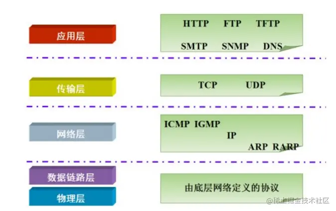 TCP/IP协议: 传输控制协议/因特网互联协议( Transmission Control Protocol/Internet Protocol),是Internet最基本、最广泛的协议。它定义了计算机如何连入因特网,以及数据如何在它们之间传输的标准。它的内部包含一系列的用于处理数据通信的协议,并采用了4层的分层模型,每一层都呼叫它的下一层所提供的协议来完成自己的需求。