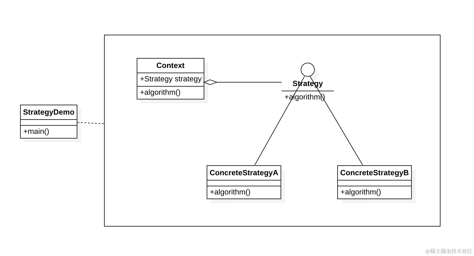 - 之所以需要这个Context,还因为有可能我们执行一个具体的逻辑,是需要多个策略来配合的,这样这多个策略的执行逻辑,就可以放在Context类中,而不是耦合在客户端代码中。