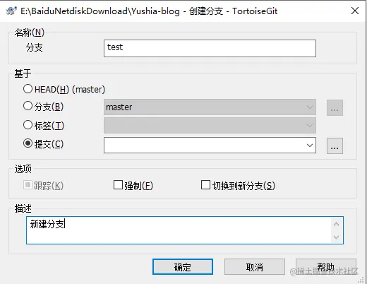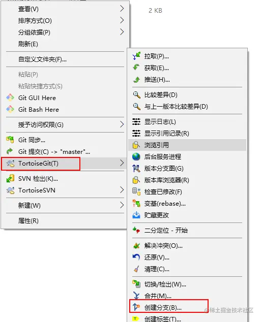 在本地仓库文件夹上【右击鼠标】→【Tortoisegit】→【创建分支】 :