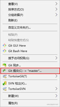 在本地项目的空白处点击鼠标右键,选择 【Git 提交(C) -> "master"...】