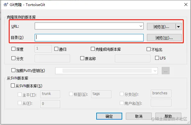 右键选择 git 克隆,填写对应 git 仓库地址和本地的存放地址