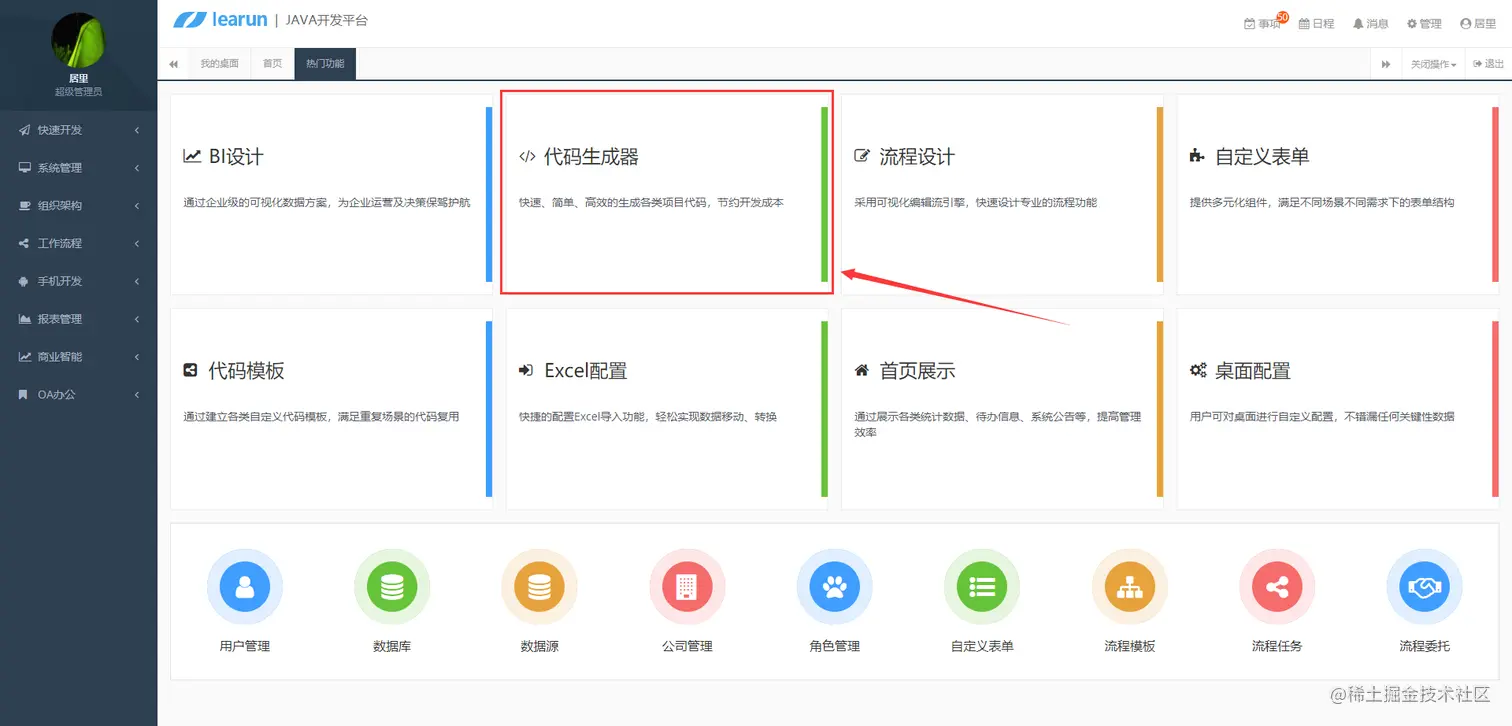 ](https://www.learun.cn) 验证后登入系统平台,点击首页的 [