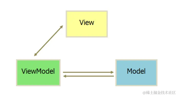 **2、MVVM(Model-View-ViewModel):**Model用纯JavaScript对象表示,View负责显示