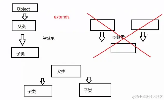 - 通过从现有类中继承其属性和方法来充实自身,这种行为或现象被称为继承。新类被称为子类(扩展类、派生类),现有类被称为父类(基类、超类)。