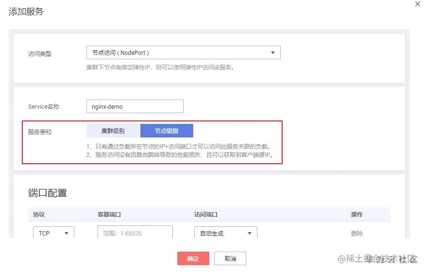Nodeport:nodeport访问方式,是将容器端口映射到节点端口,如果“服务亲和”选择“集群级别”需要经过一次服务转发,无法实现获取客户端源ip,而“节点模式”不经过转发,可以获取客户端源ip。