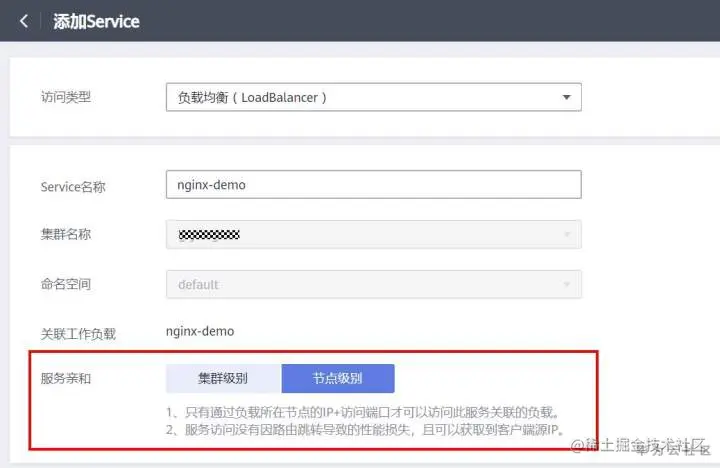 1. 服务亲和选择“节点级别”而不是“集群级别”。
