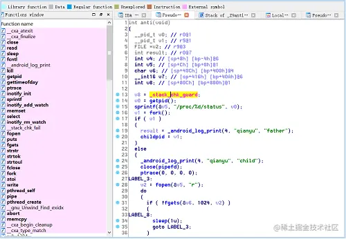 2.这几个函数就是有反调试函数的地方,如下图所示。