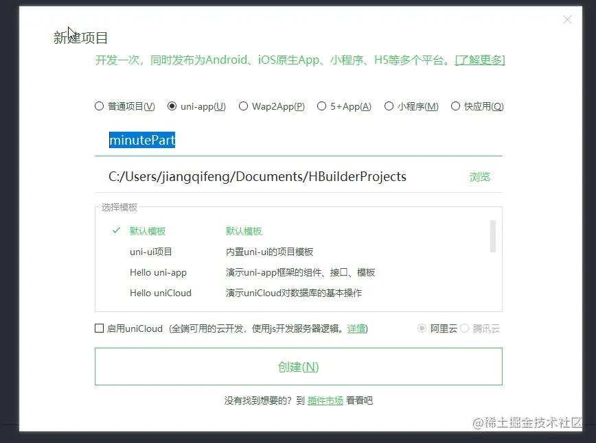新建项目 minutePart